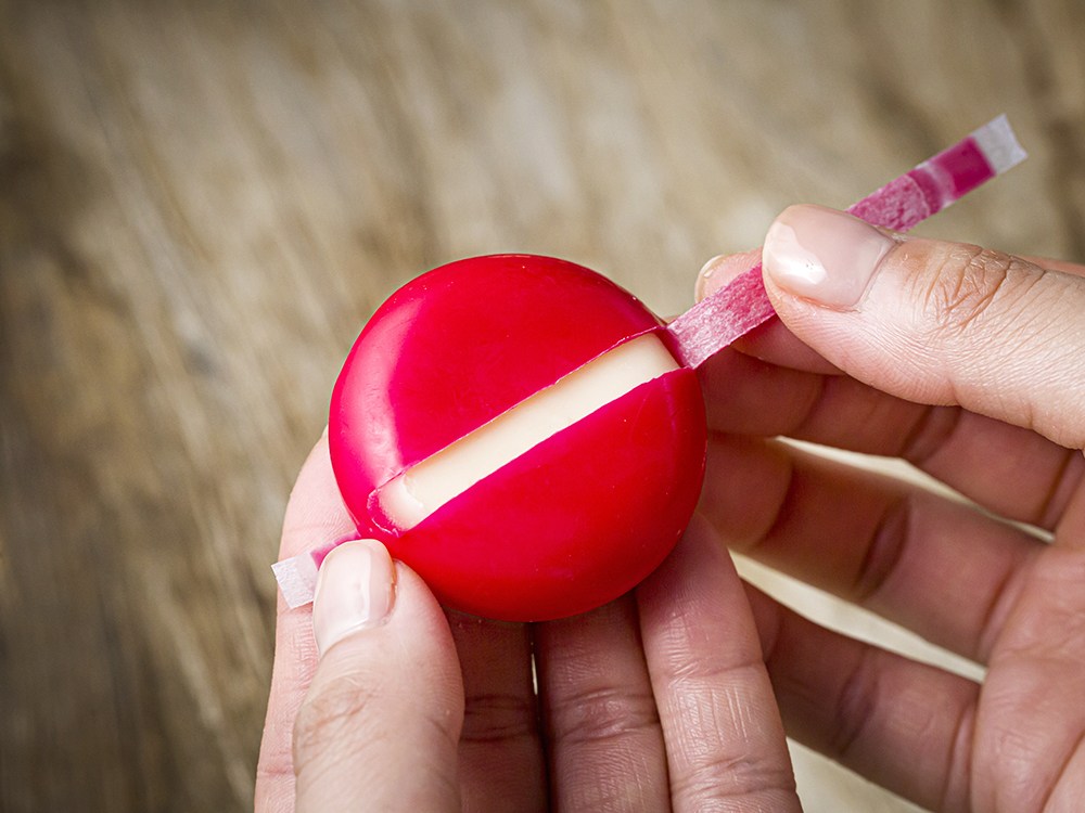 가운데 절취선을 따라 당기면, 새하얀 치즈가 모습을 드러낸답니다.