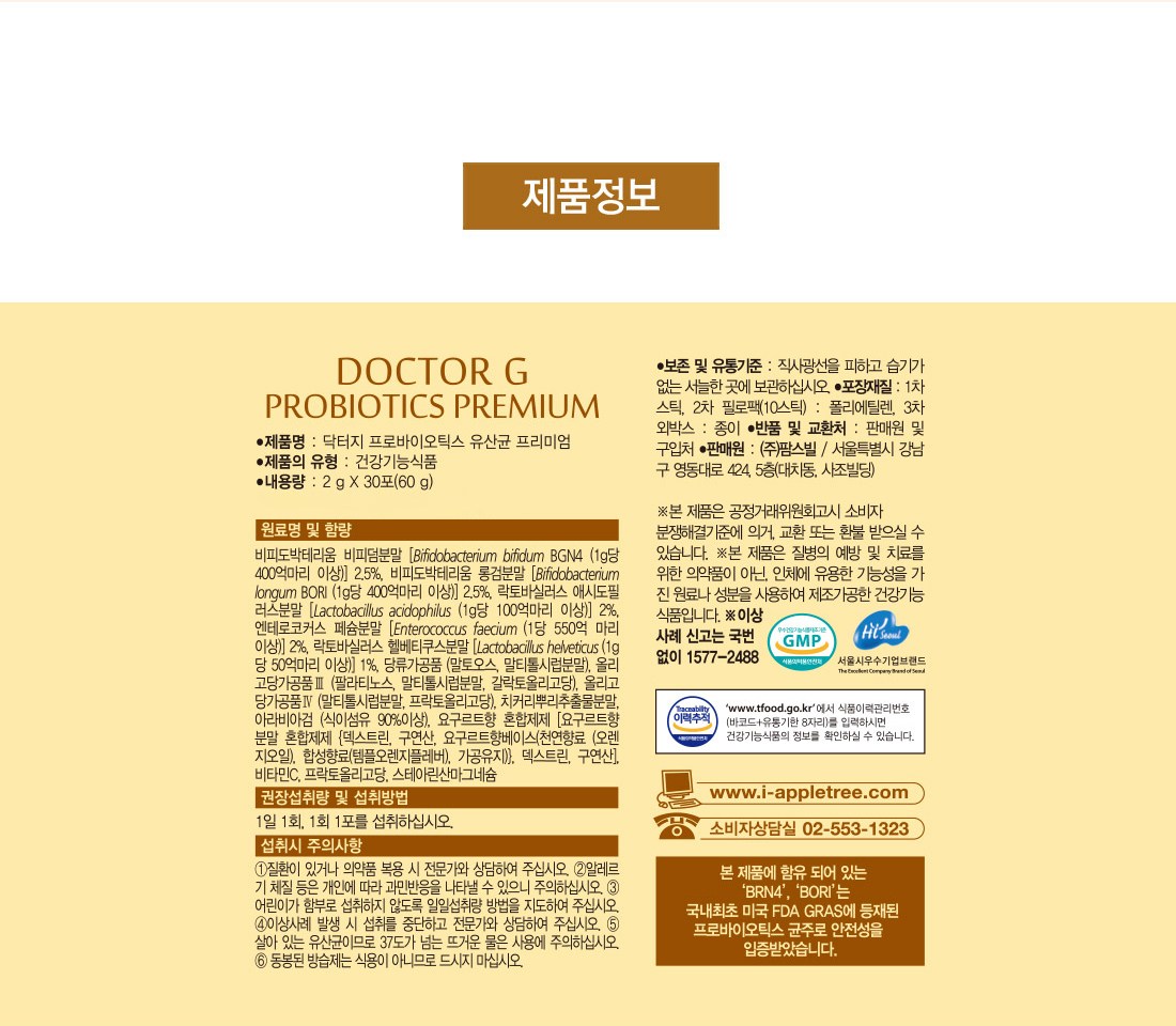| 소비기한 및 보관방법 | 보관방법: 컨텐츠 참조 | 포장단위별 내용물의 용량(중량), 수량 | 2g*30개 |