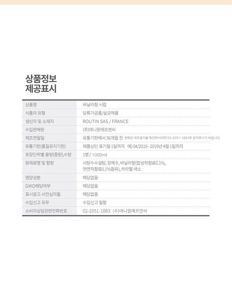 - 시럽 맛/향: 바닐라