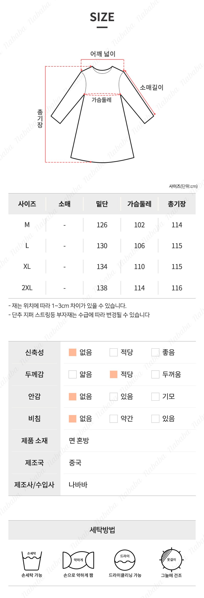 | 제조국 | 상품 상세페이지 참조 | 세탁방법 및 취급시 주의사항 | 상품 상세페이지 참조 |