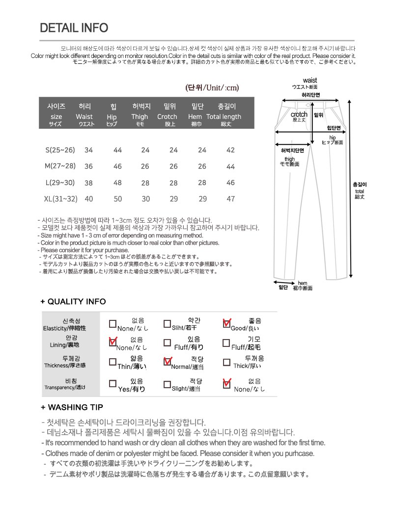 - 하의류 길이: 무릎 위 길이(반바지 길이)