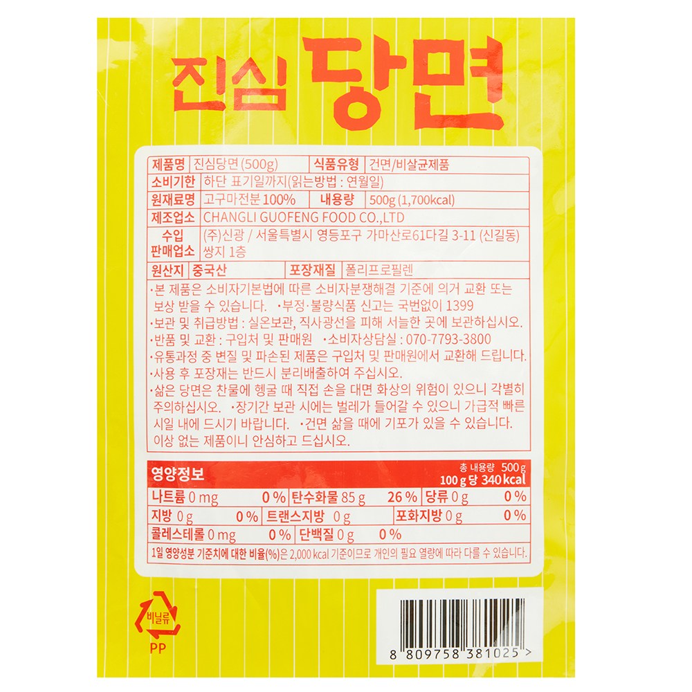 - 면 종류: 건면