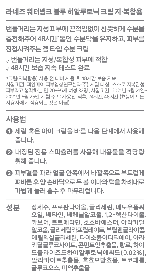 | 용량(중량) | 컨텐츠 참조 | 제품 주요 사양 | 모든 피부용 |