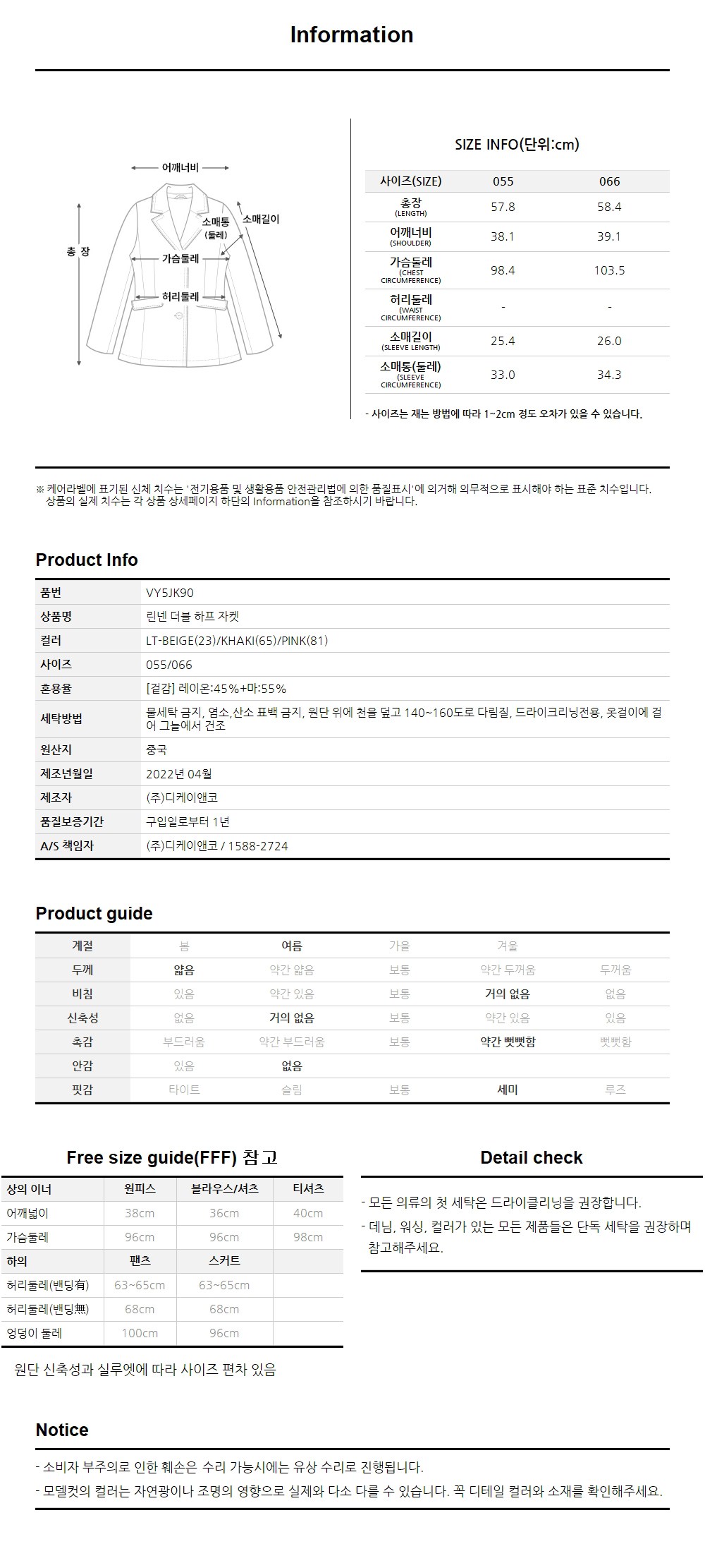 - 상의 사이즈: 여성 55