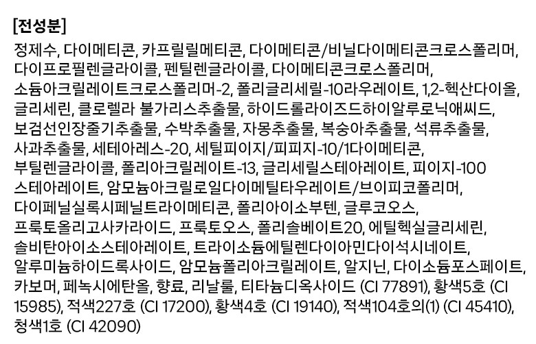 | 용량(중량) | 4g | 제품 주요 사양 | 모든 피부용 |