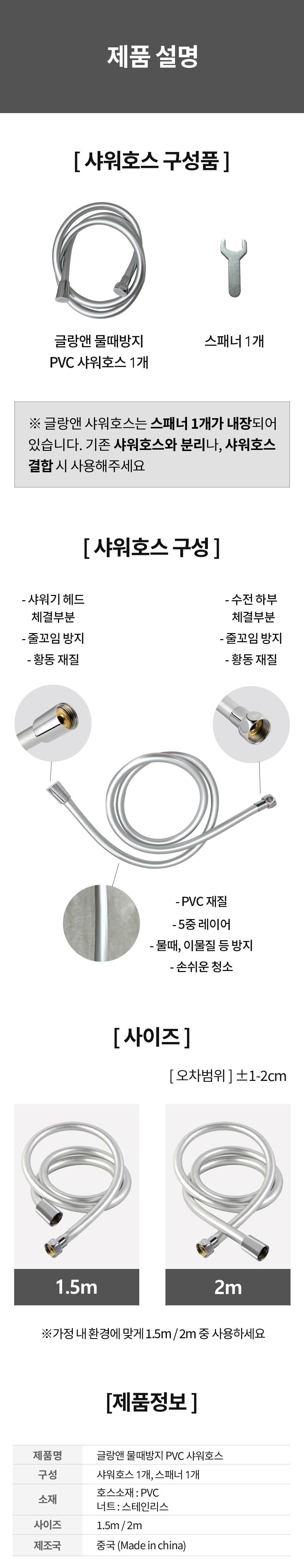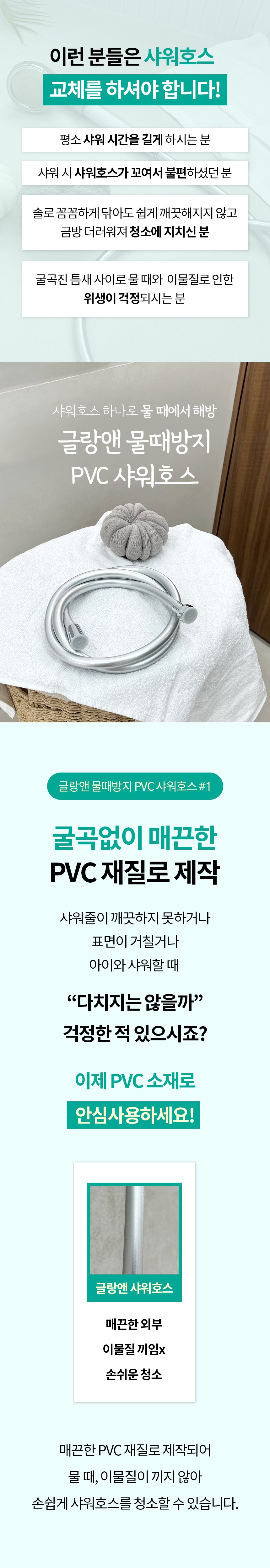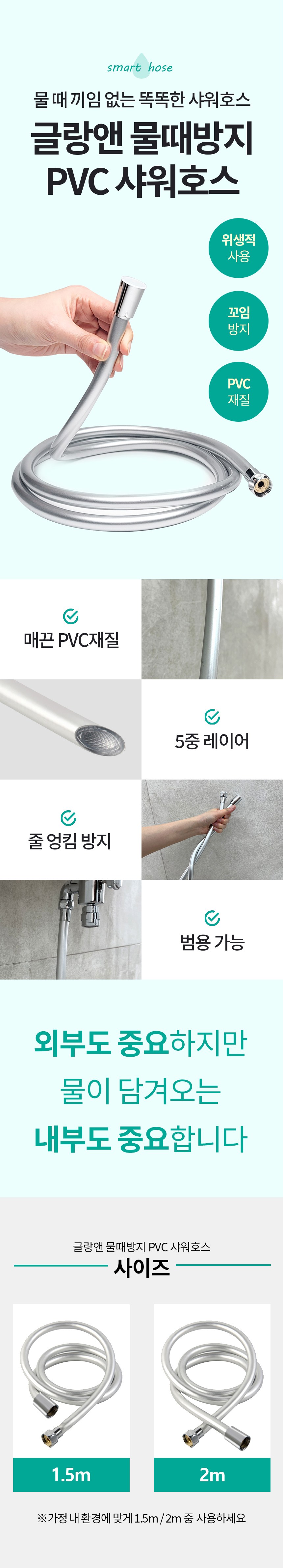 | 품명 및 모델명 | 글랑앤 물때방지 PVC 샤워호스 | 인증/허가 사항 | 해당없음 |