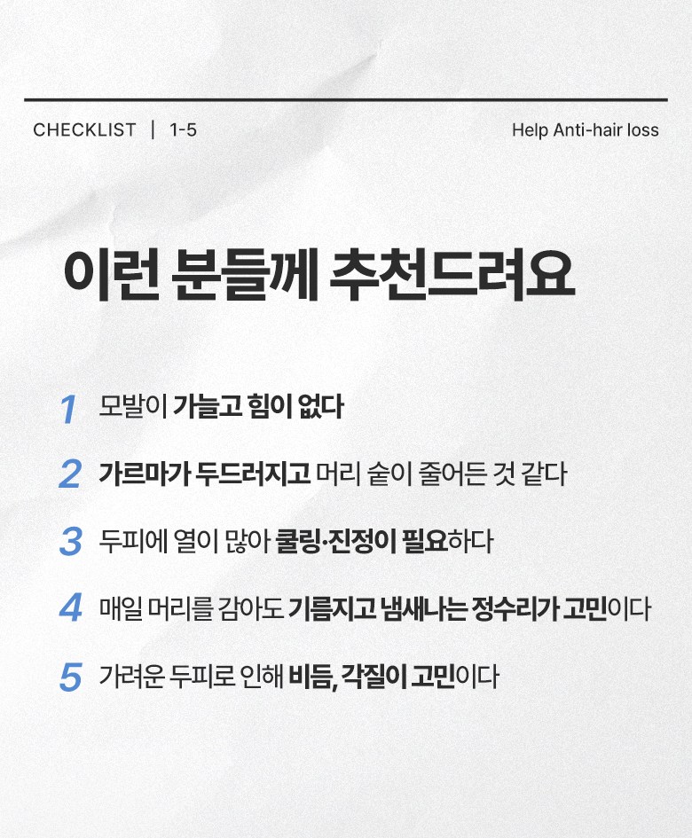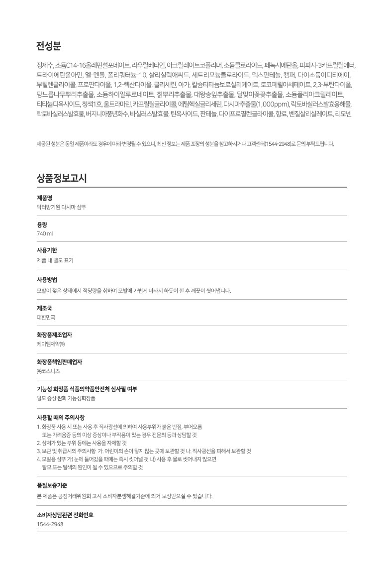 | 사용기한 또는 개봉 후 사용기간 | 본 상품은 해당 물류센터 직발송 상품인 관계로 제조연월일 및 사용기한 정보가 매번 변경되므로 상단 사용기한 정보를 참고해 주세요. | 사용방법 | 1일 1회 온수로 모발 및 두피를 충분히 적신 후, 적당량을 모발과 두피에 골고루 도포하여 마사지 후 깨끗이 헹궈냅니다 |