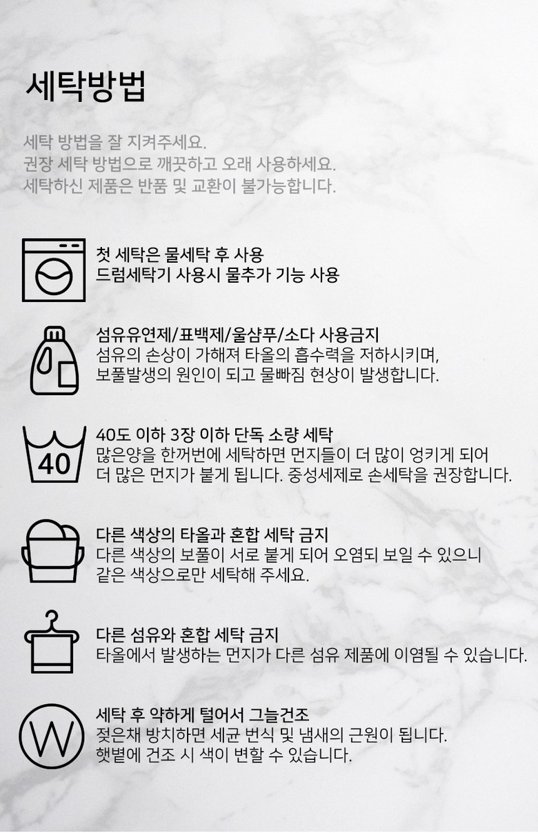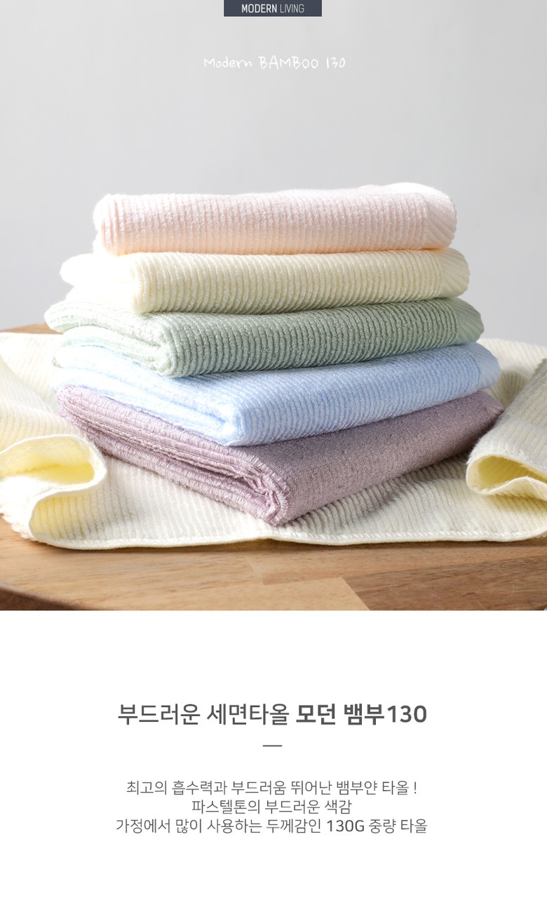 | 품명 및 모델명 | 세면타올 / 모던리빙 모던뱀부130 수건 | 인증/허가 사항 | 해당없음 |