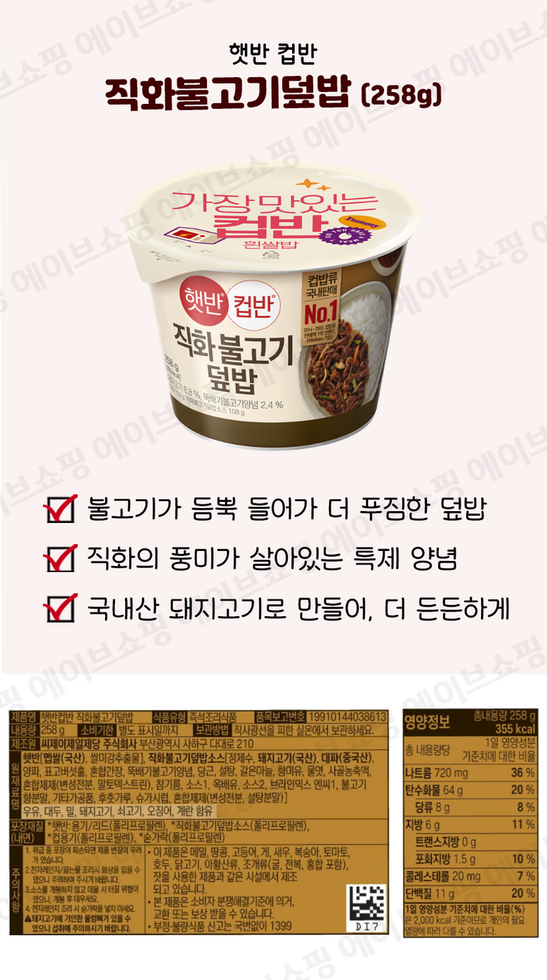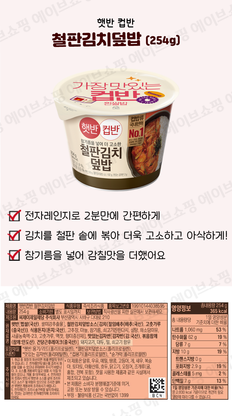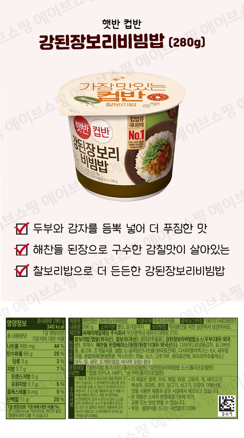 | 제조연월일, 소비기한 또는 품질유지기한 | 상품 상세페이지 참조 | 세부 품목군별 표시사항 | 상품 상세페이지 참조 |