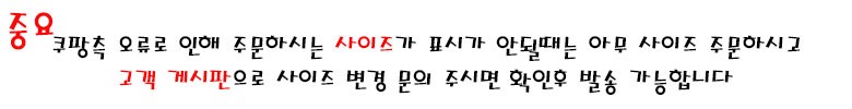 - ㆍ모니터 해상도의 차이로 인해 색상이나 이미지가 실제와 달라, 고객이 단순 변심으로 교환/반품을 무료로 요청하는 경우