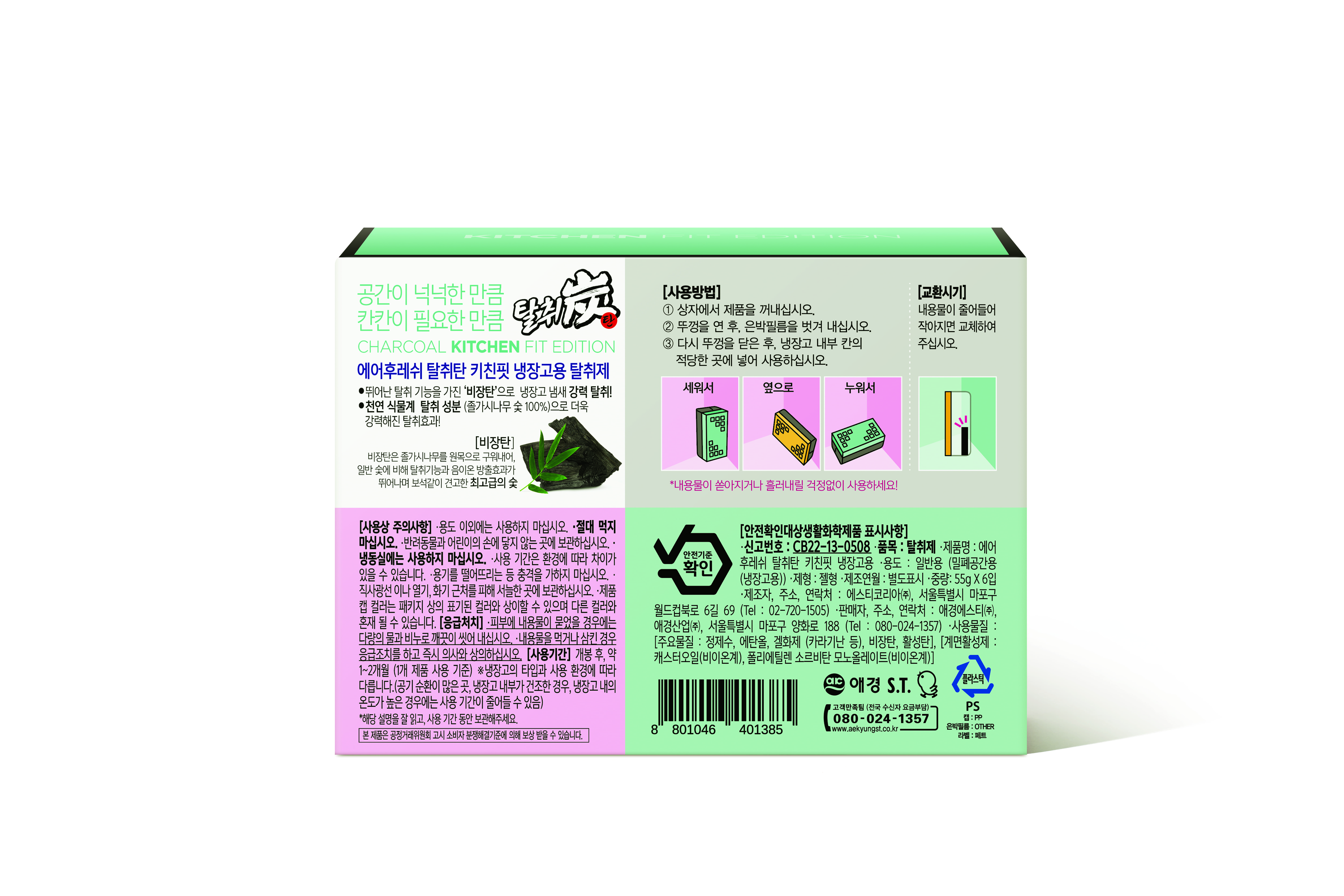 | 품목 및 제품명 | 탈취제 / 에어후레쉬 탈취탄 키친핏 냉장고용 | 용도(표백제의 경우 계열을 함께표시) 및 제형 | 일반용-밀폐공간용-냉장고용 / 비분사형-에멀션형(젤형) |