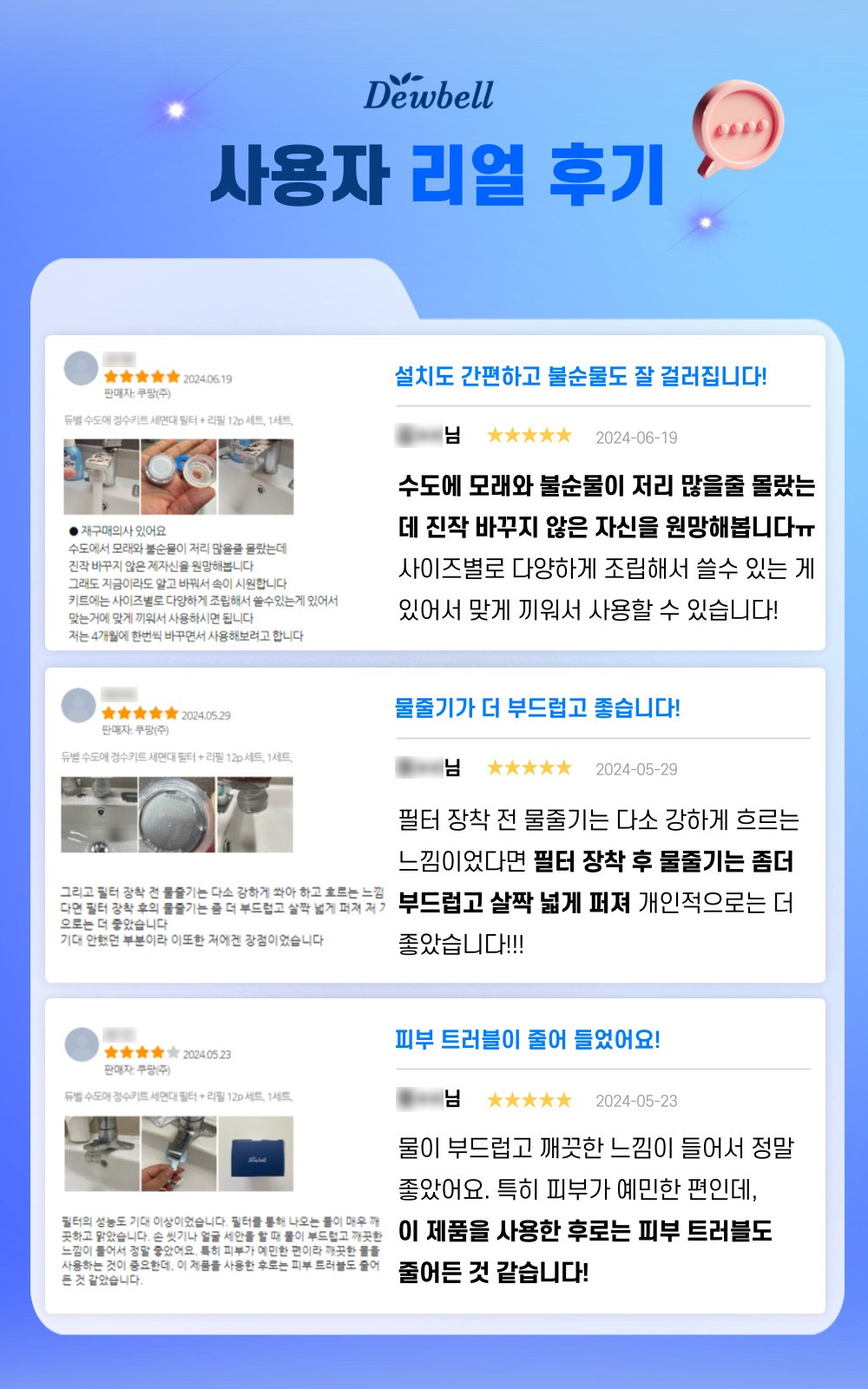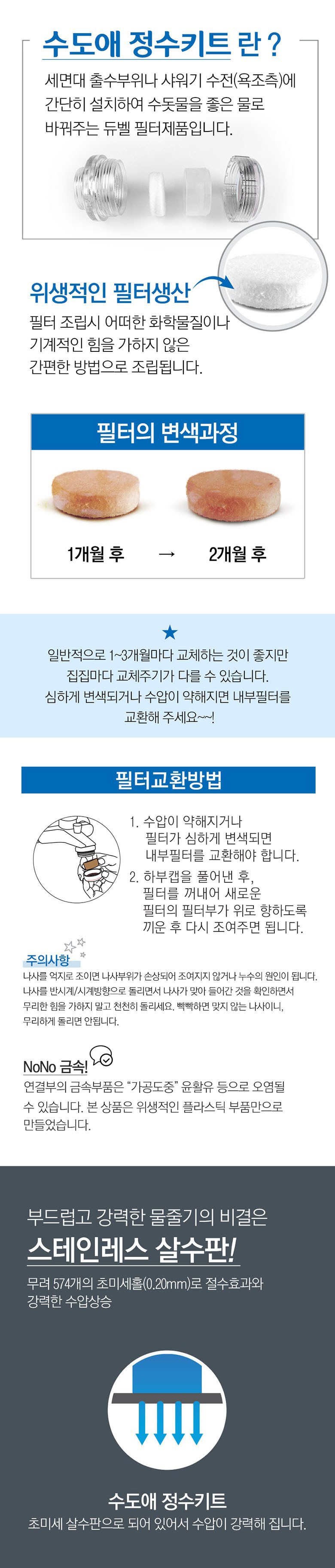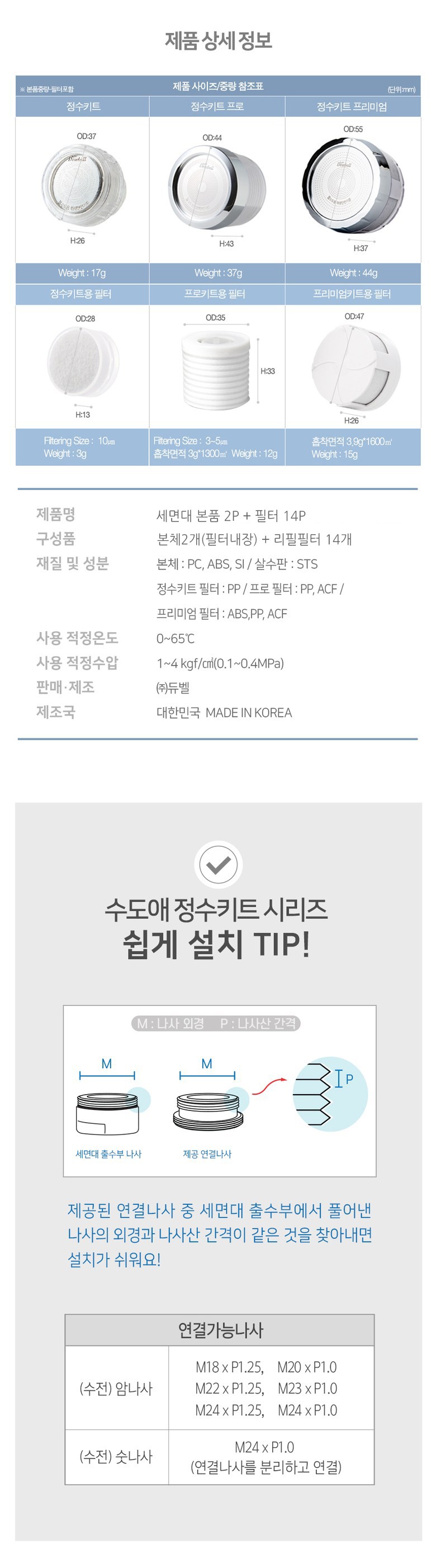 | 품명 및 모델명 | 듀벨 수도애 정수키트 세면대 본품 + 필터 세트 / DK30-A | 인증/허가 사항 | KCW-2018-0194 |