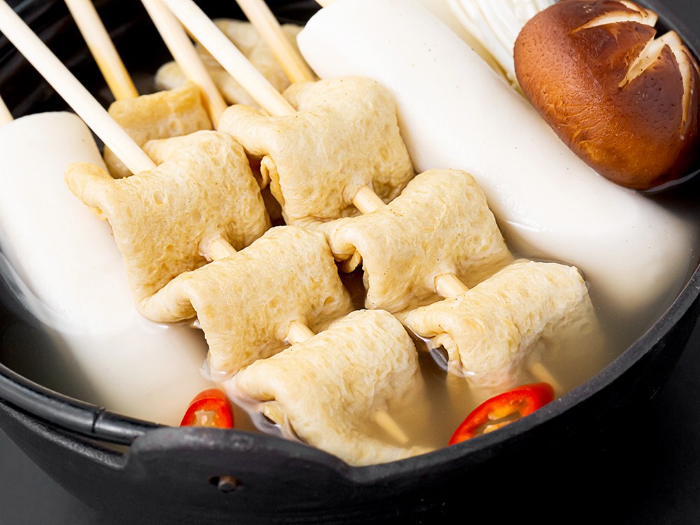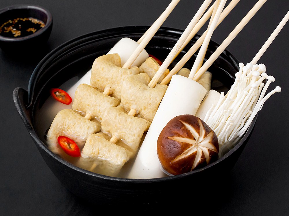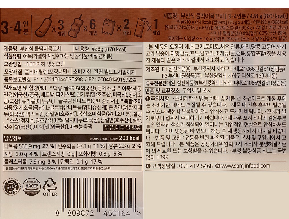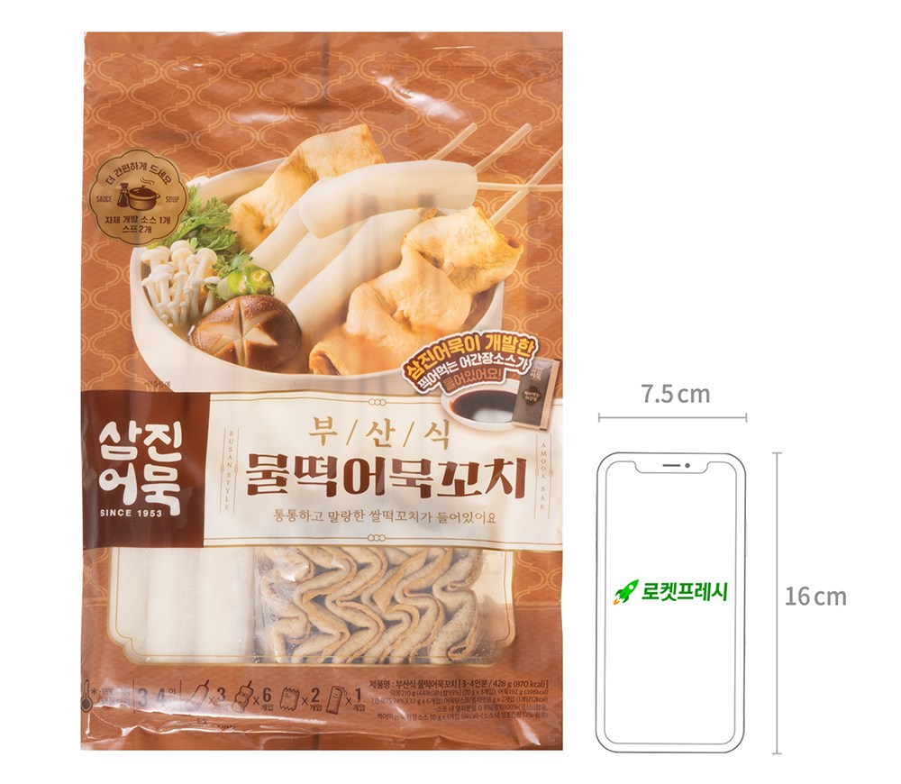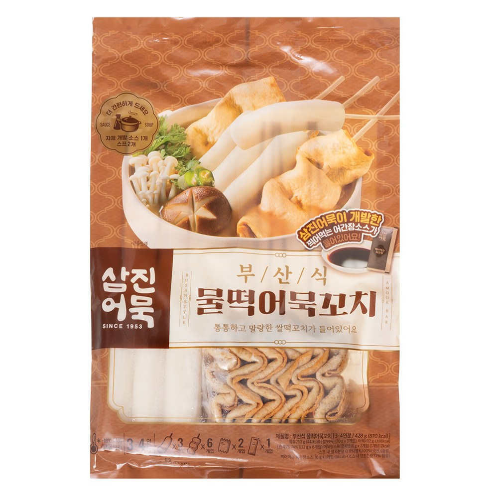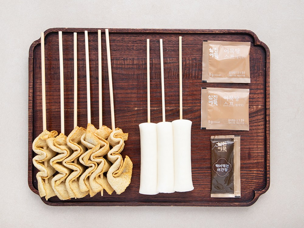 떡, 어묵, 어묵탕 스프, 양조간장으로 구성되어 있습니다.