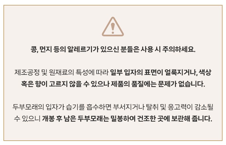 | 품명 및 모델명 | 탐사 가는 입자 고양이 두부모래 2mm, 8L x 5팩, 녹차향 | 인증/허가 사항 | 해당없음 |