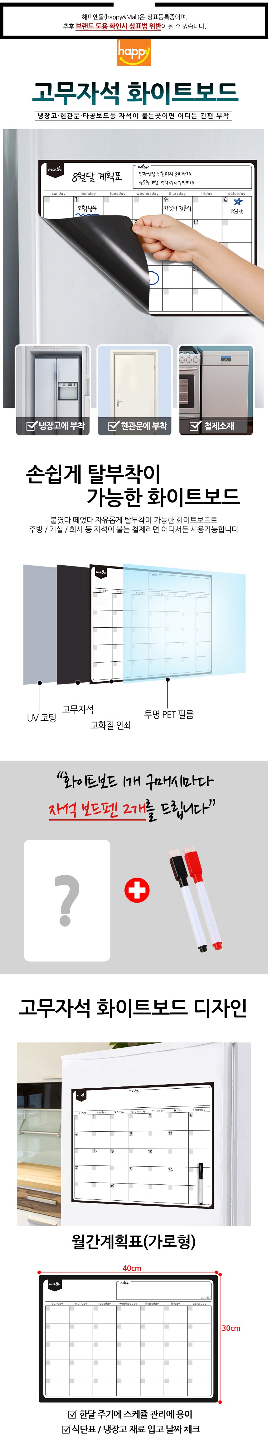| 품명 및 모델명 | 해피앤몰 자석 월간 달력 보드 + 마카펜 2p 세트 | 인증/허가 사항 | 해당없음 |