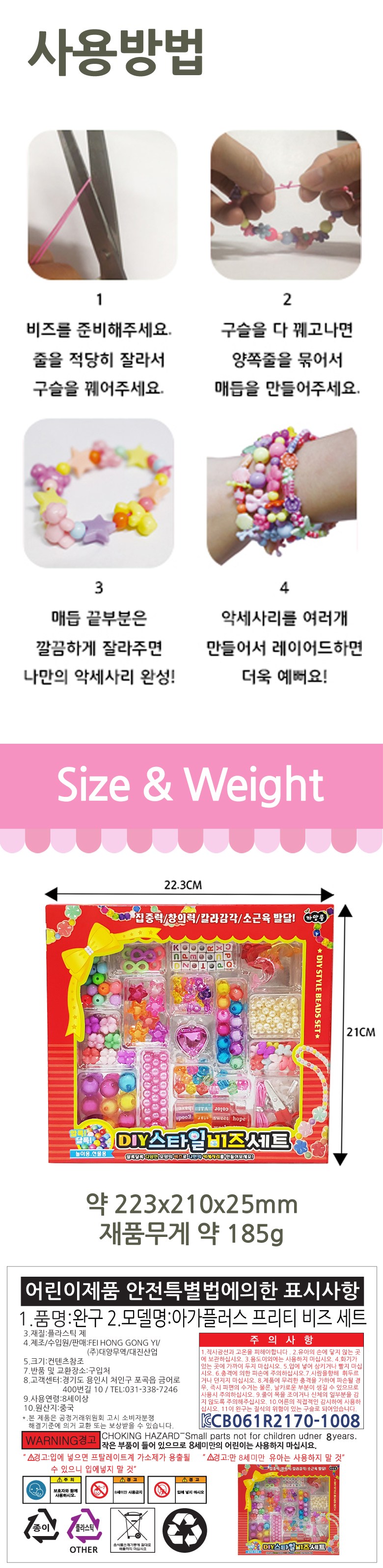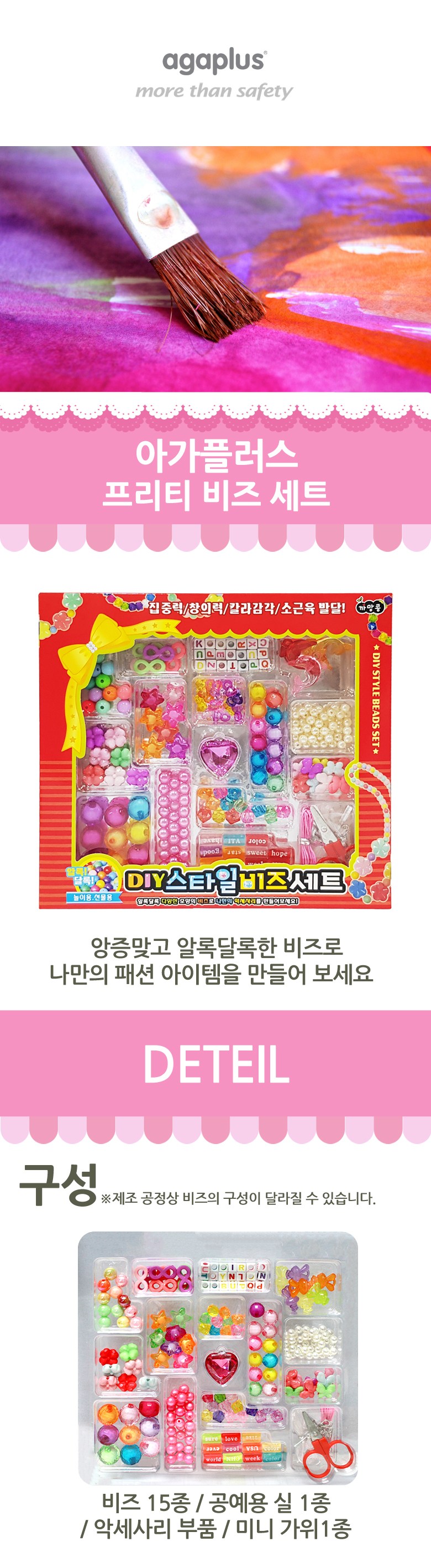 계좌이체- 구성품: 비즈 15종 + 공예용 실 + 아세사리 부품 + 미니 가위