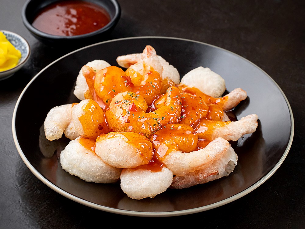 찹쌀가루 등을 더해 쫀득한 칠리새우