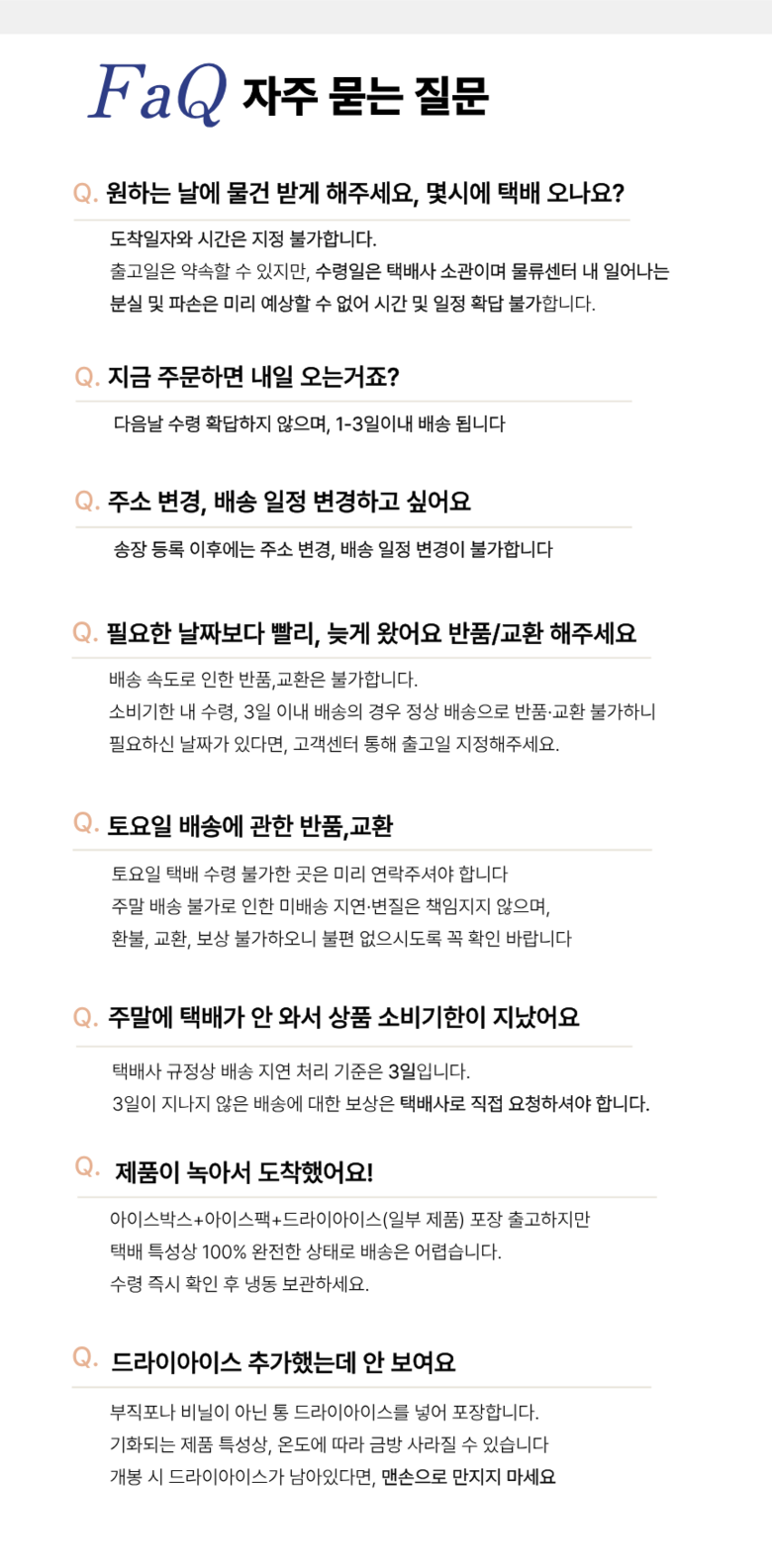 | 교환/반품 비용 (왕복비용) | 8,000원 - 단, 고객 변심의 경우에만 발생 - 도서산간 및 일부 지역 추가비용 발생 |
