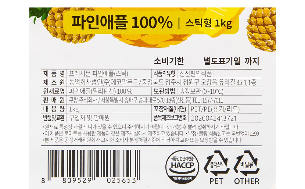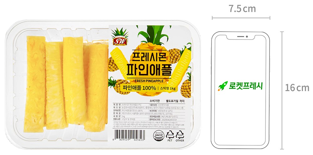 껍질이 거칠어 손질이 어려운 파인애플을 간편하게 만나보세요. 활용하기 편한 스틱 모양으로 손질해 담았답니다. 꼬치를 꽂아서 즐겨도 좋고, 알맞게 잘라서 드셔도 좋아요. 입안 가득 새콤달콤한 풍미를 선사할 거예요.