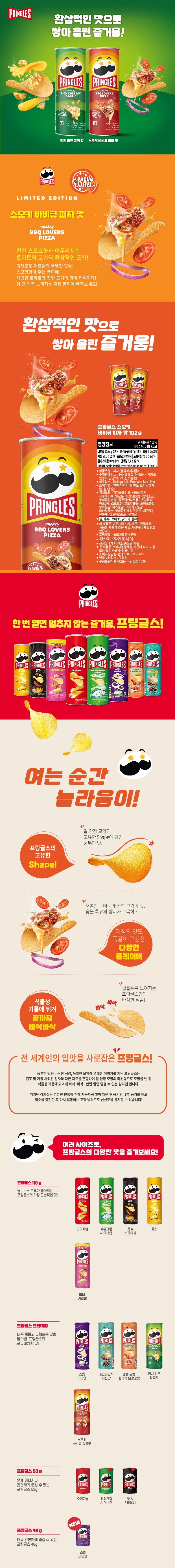 | 제품명 | 프링글스 스모키 바비큐 피자 맛 | 식품의 유형 | 컨텐츠 참조 |