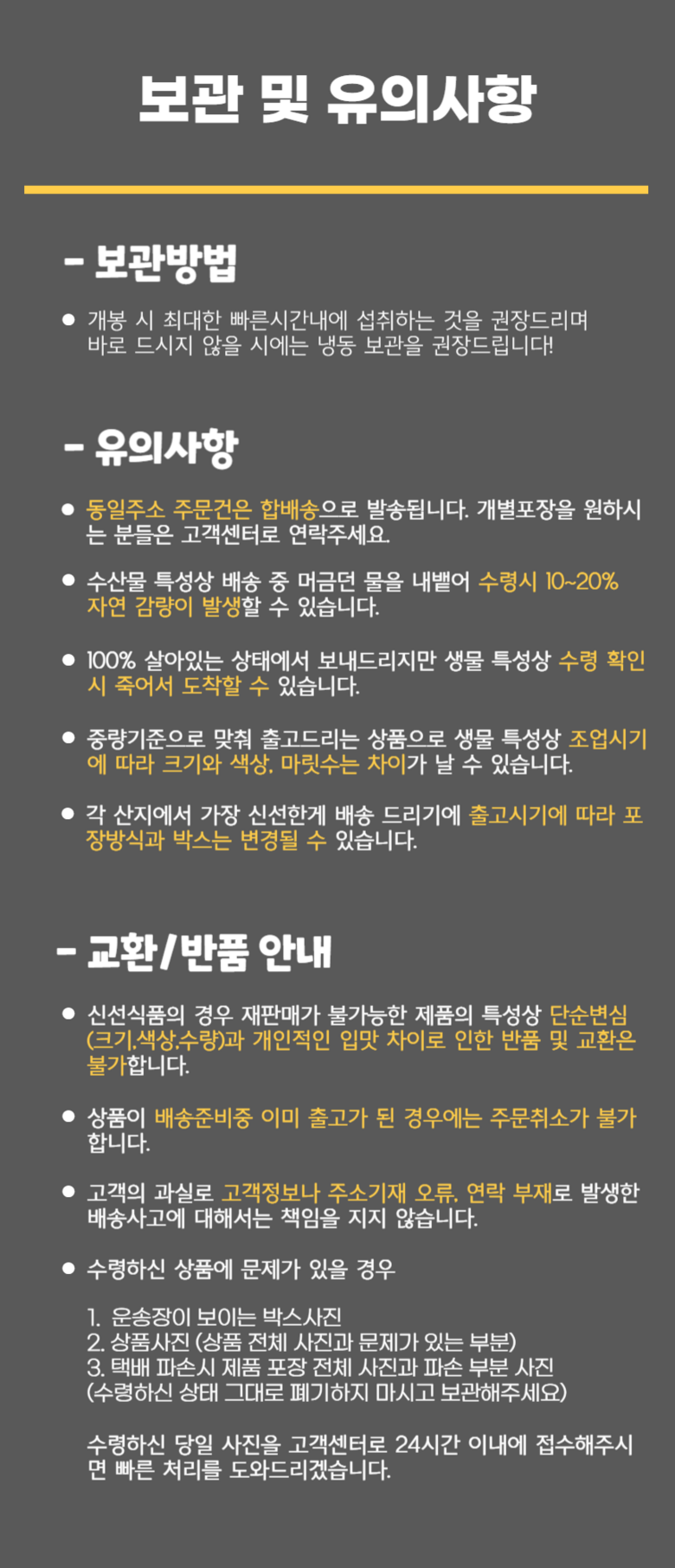 | 배송방법 | 신선/냉장/냉동 | 배송비 | 무료배송 - 도서산간 지역 배송불가 |