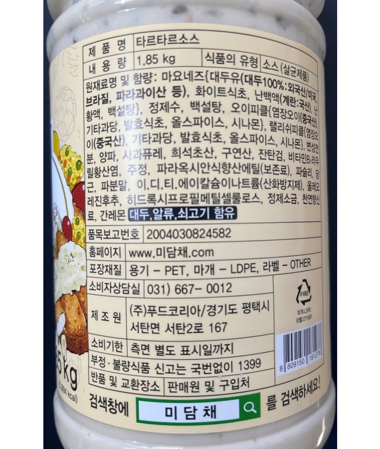 | 제조연월일, 소비기한 또는 품질유지기한 | 상품 상세페이지 참조 | 세부 품목군별 표시사항 | 상품 상세페이지 참조 |