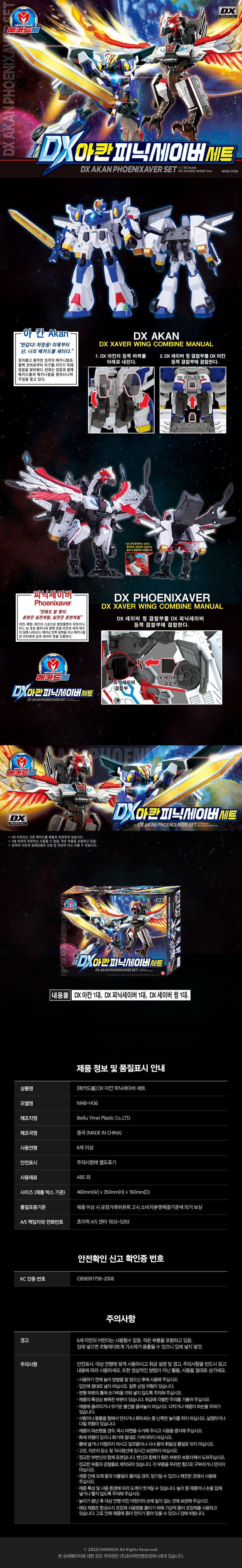 | 품명 및 모델명 | DX 아칸 피닉세이버 세트 MAB-HG6 | KC 인증정보 | CB065R1758-2008 |