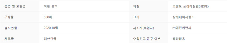 | 품명 및 모델명 | 상품 상세페이지 참조 | 인증/허가 사항 | 상품 상세페이지 참조 |