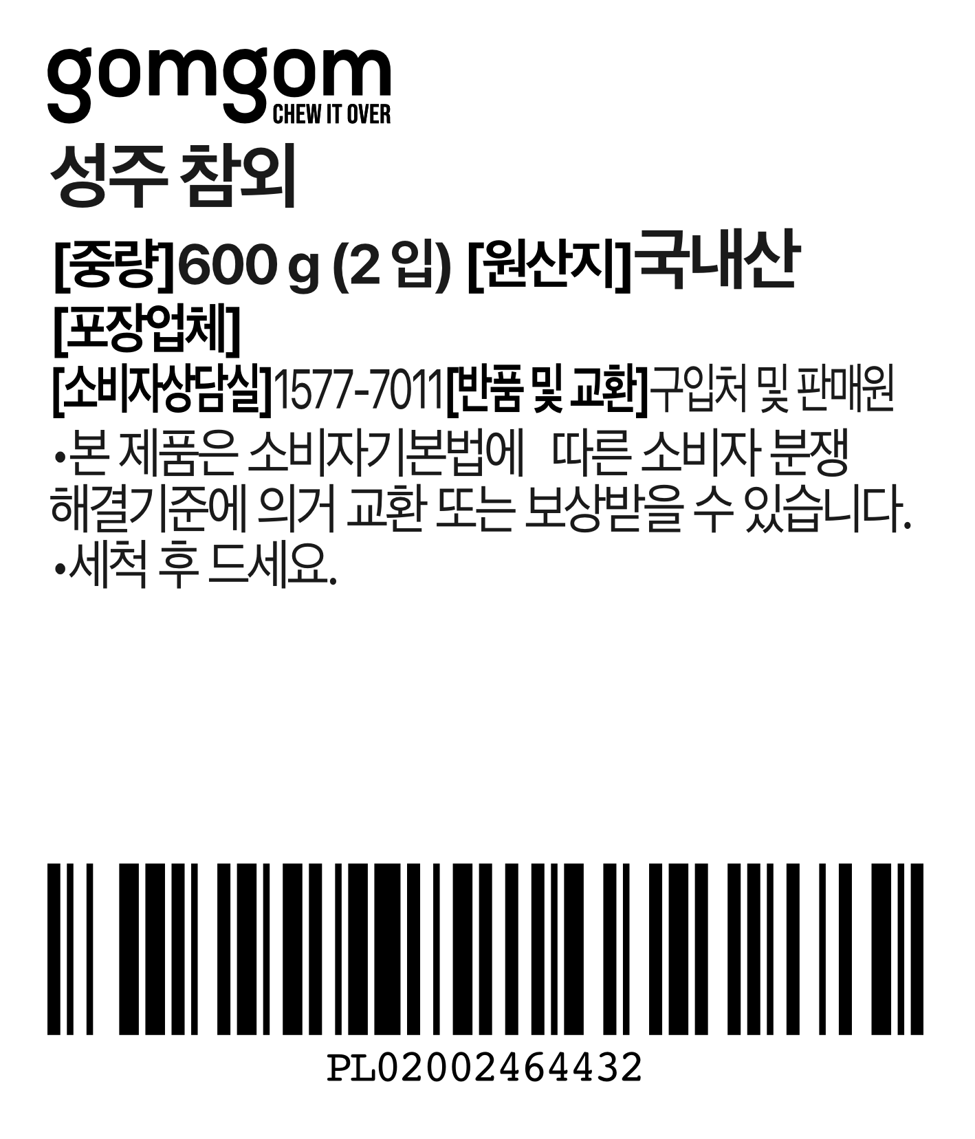 | 품목 또는 명칭 | 곰곰 성주 참외 | 포장단위별 내용물의 용량(중량),수량,크기 | 컨텐츠참조 |