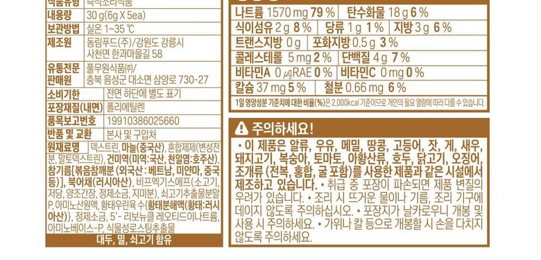 | 제품명 | 상품 상세페이지 참조 | 식품의 유형 | 상품 상세페이지 참조 |