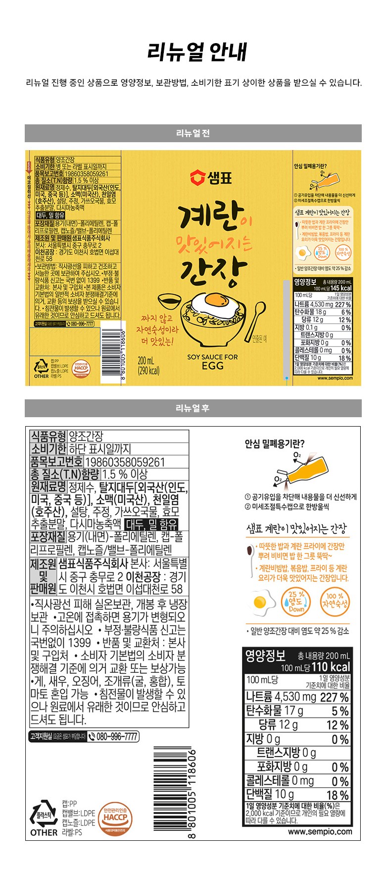 | 제품명 | 계란이 맛있어지는 간장 | 식품의 유형 | 컨텐츠참조 |