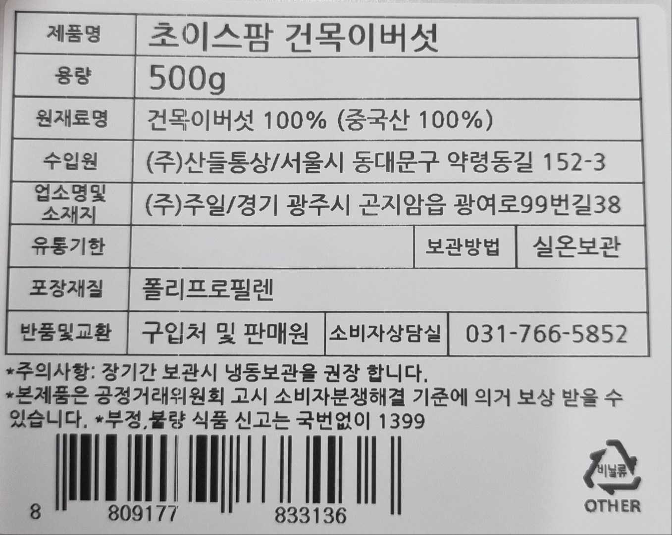 | 제조연월일, 소비기한 또는 품질유지기한 | 소비기한(또는 유통기한) : 2026년 06월 17일 이거나 그 이후인 상품 제조년월일 : 2025년 06월 18일 이후인 제조상품 | 세부 품목군별 표시사항 | 농수산물 : 유전자변형(해당 없음) / 지리적 표시사항(해당 없음) |