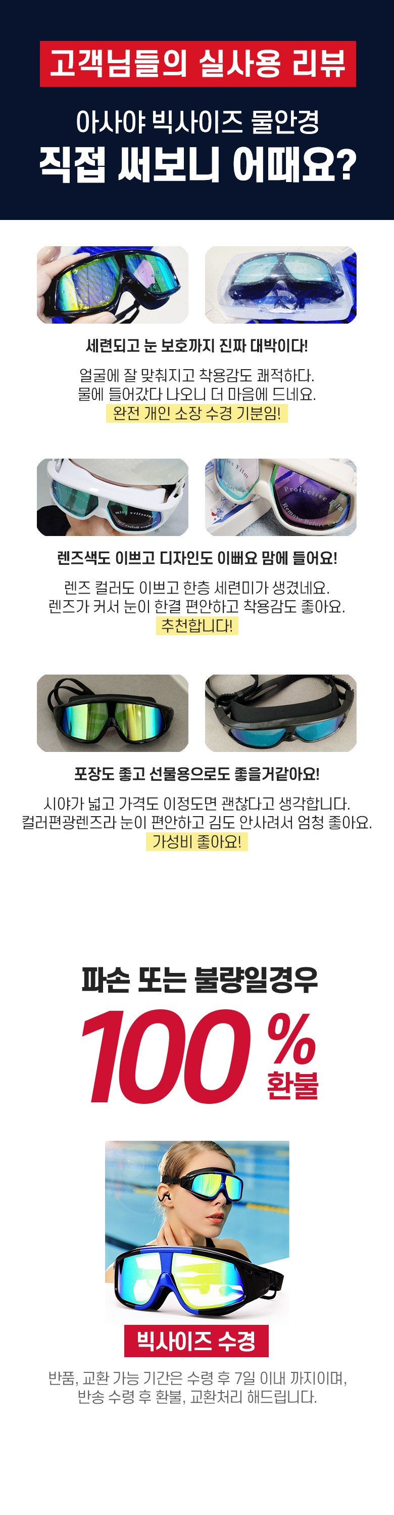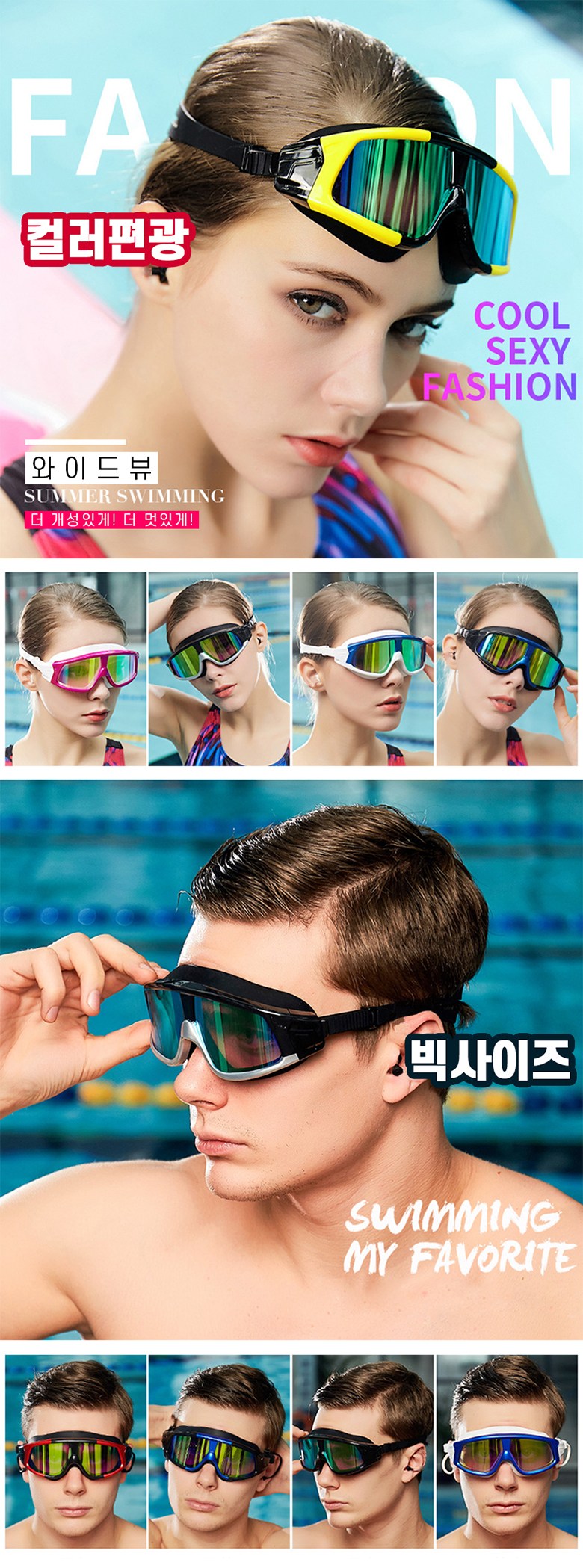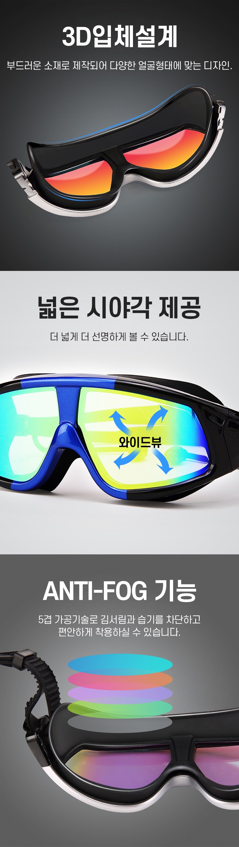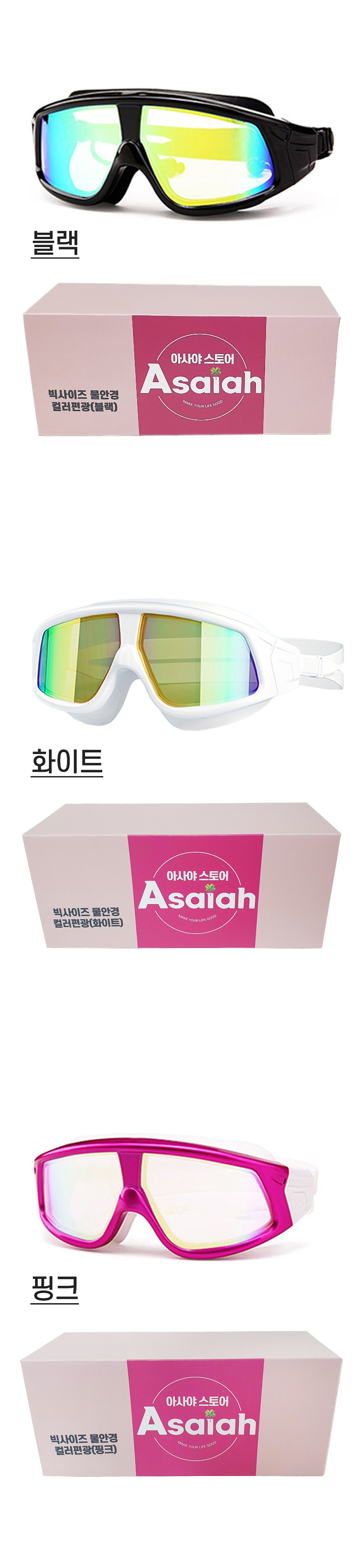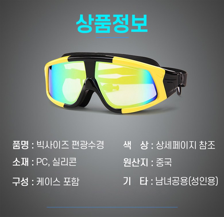 | 종류 | 아사야 빅사이즈 컬러편광렌즈 물안경 | 소재 | PC, 실리콘, 외 |