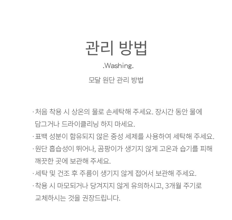 | 제조국 | 알 수 없음(판매자 정보 미제공) | 세탁방법 및 취급시 주의사항 | 알 수 없음(판매자 정보 미제공) |