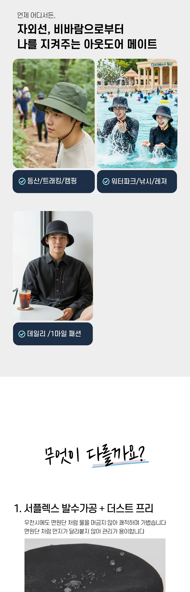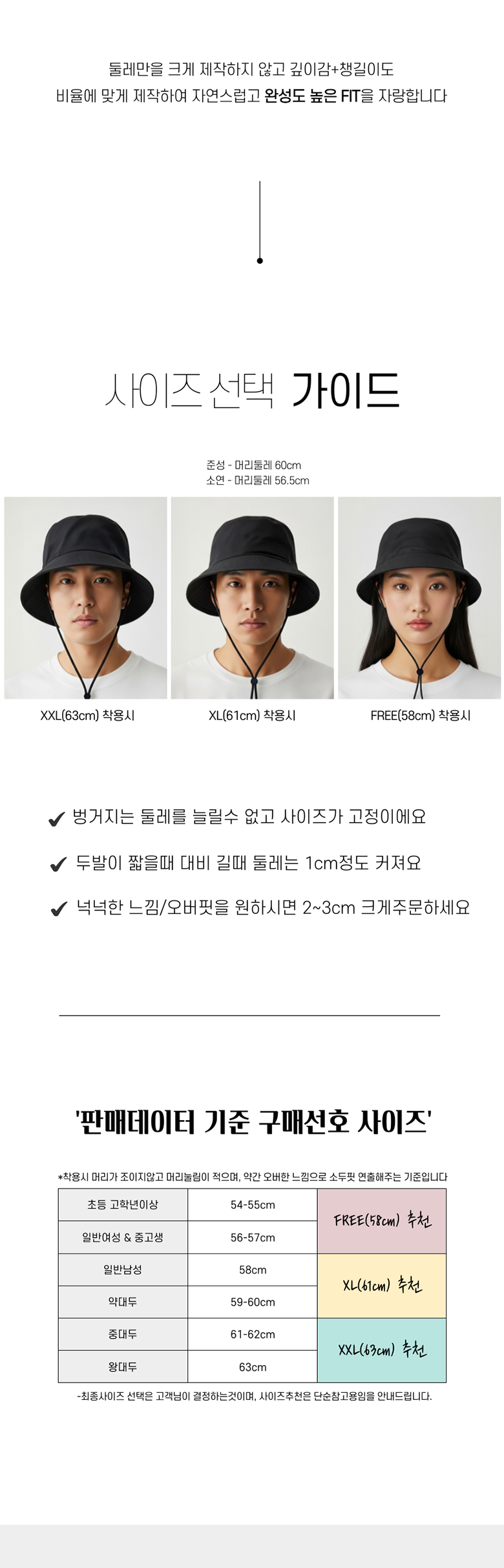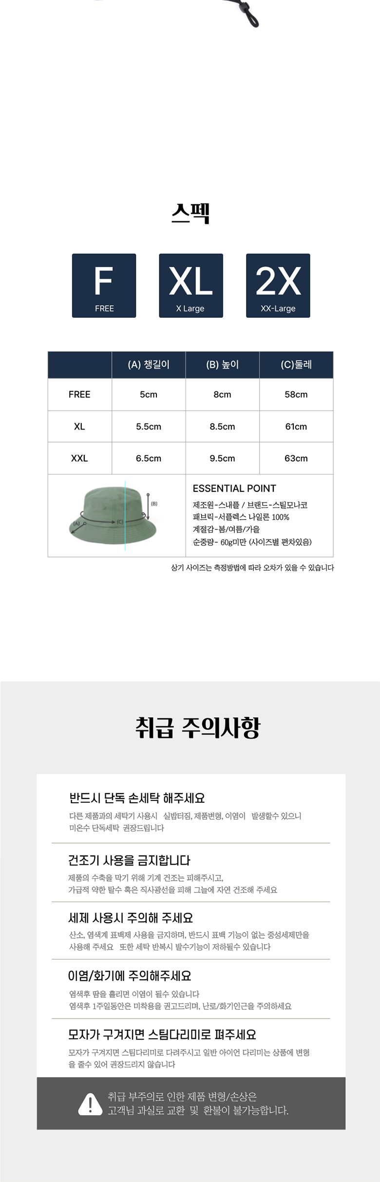 - 모자 종류: 벙거지/버킷햇