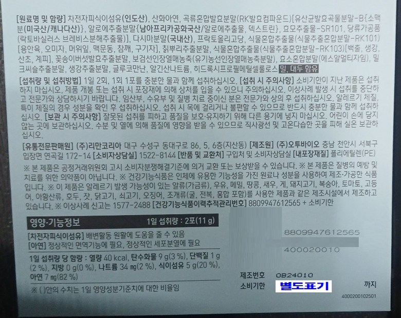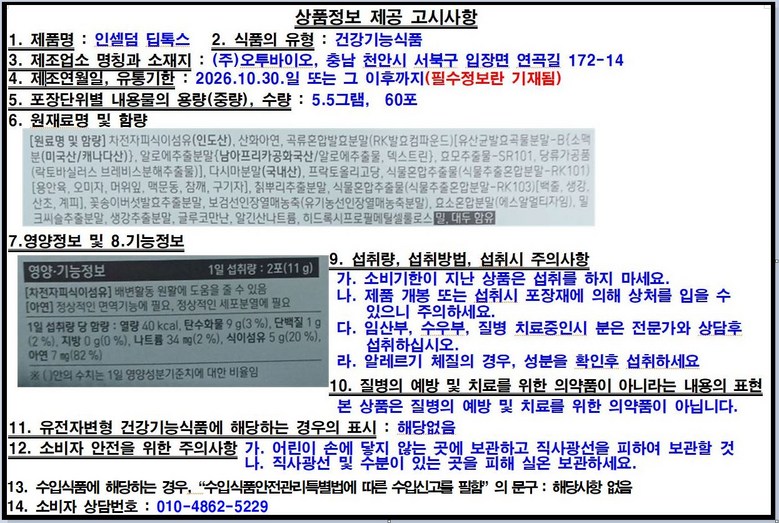 | 원료명 및 함량 | 상품 상세페이지 참조 | 영양정보 | 상품 상세페이지 참조 |