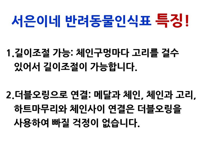 | 품명 및 모델명 | 서은이네 애견이름표 목걸이 인식표 | 인증/허가 사항 | 없음 |