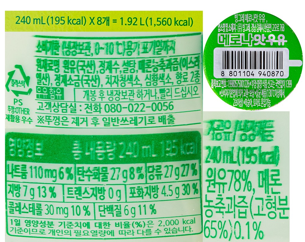 | 제품명 | 빙그레 메로나맛 우유 | 식품의 유형 | 컨텐츠 참조 |