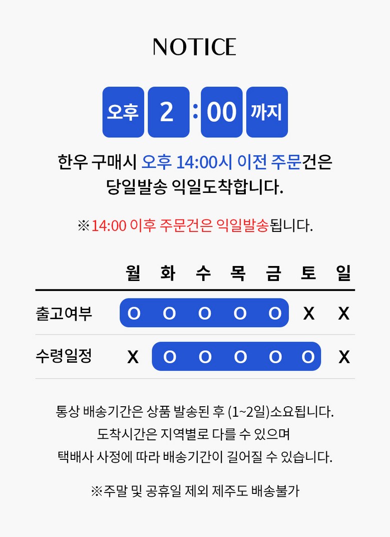 | 교환/반품 비용 (왕복비용) | 8,000원 - 단, 고객 변심의 경우에만 발생 - 도서산간 지역 배송불가 |