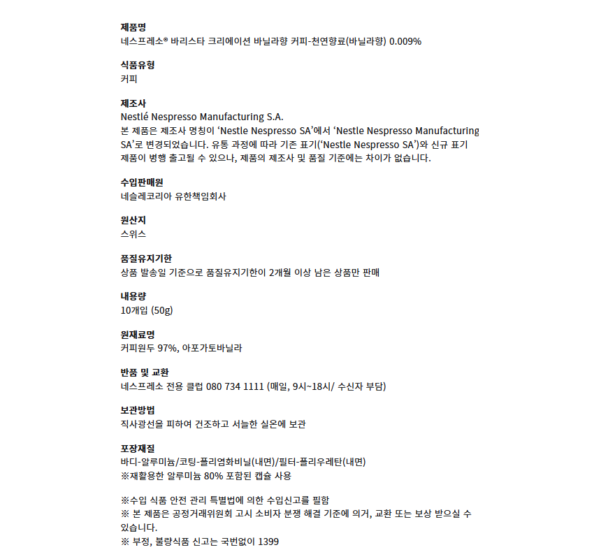 | 생산자 및 소재지 | 컨텐츠 참조 | 제조연월일, 소비기한 또는 품질유지기한 | 소비기한(또는 유통기한) : 2026년 08월 09일 이거나 그 이후인 상품 제조년월일 : 2025년 08월 10일 이후인 제조상품 |