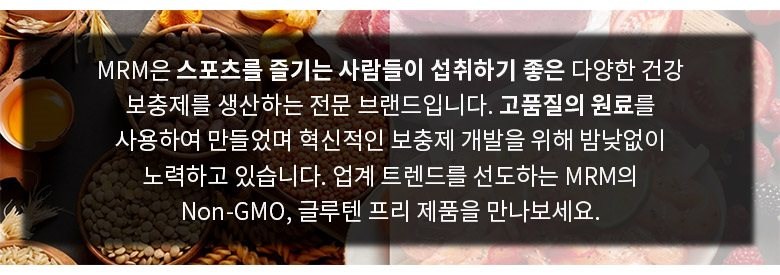 MRM은 다양한 스포츠, 건강 보충제를 생산하는 전문 브랜드입니다. 우수한 품질의 원료를 사용하여 업계 트렌드를 선도하고 있으며 혁신적인 영양 보충제 개발을 위해 밤낮없이 노력합니다. Non-GMO, 글루텐 프리 제품을 제공합니다.