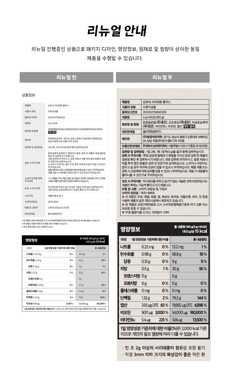 | 포장단위별 내용물의 용량(중량), 수량 | 컨텐츠 참조 | 원재료명 및 함량 | 컨텐츠 참조 |