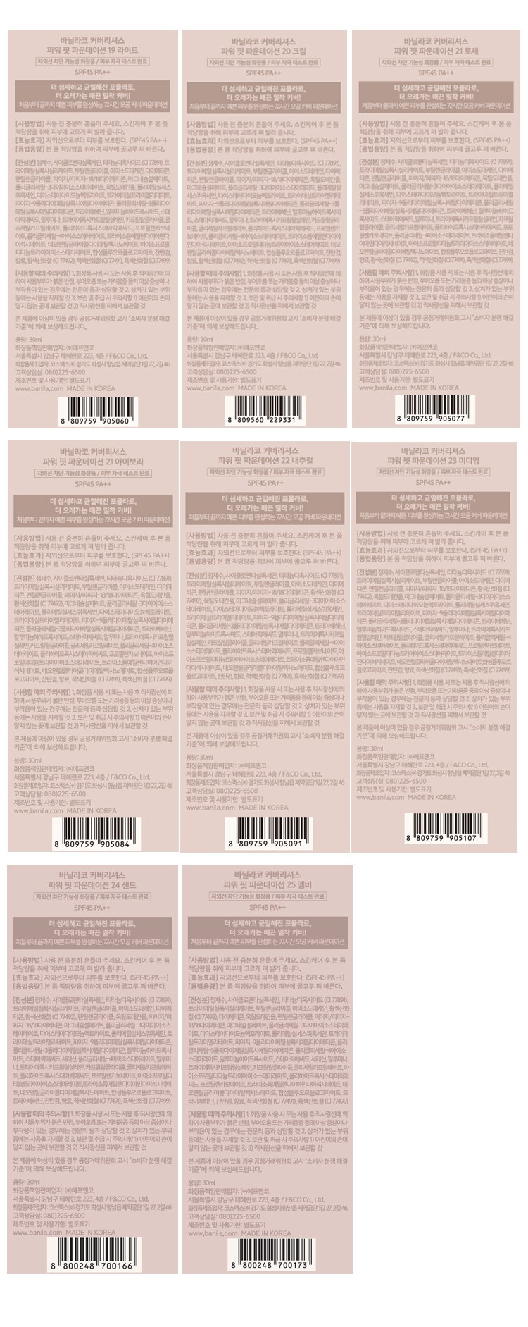 | 화장품제조업자, 화장품책임판매업자 및 맞춤형화장품판매업자 | 컨텐츠 참조 | 제조국 | 한국 |