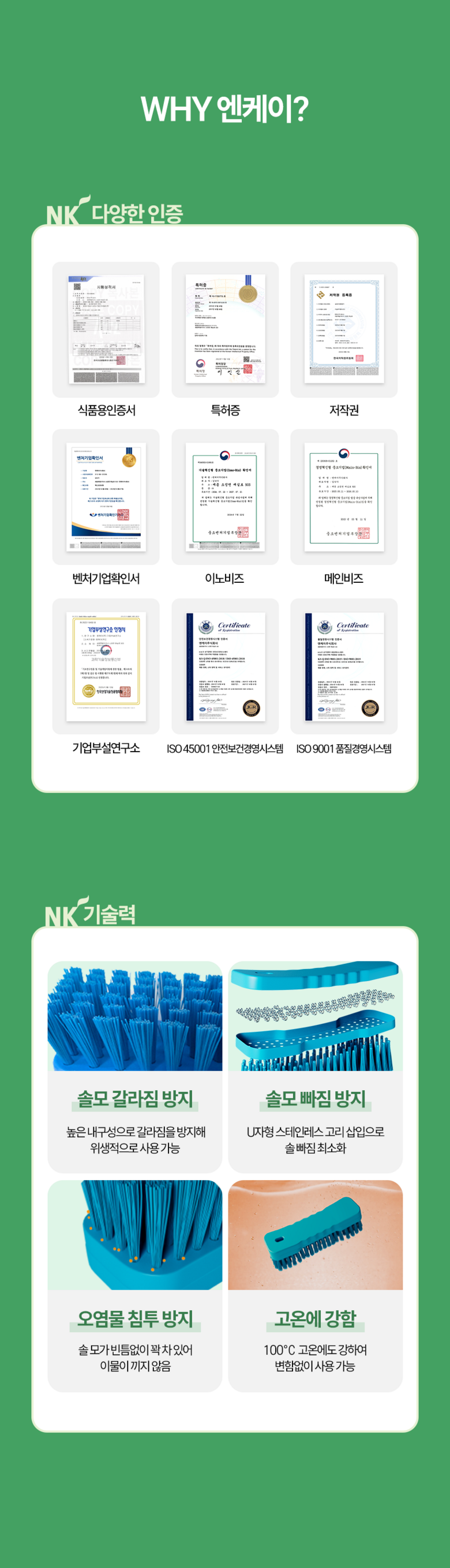| 품명 및 모델명 | 엔케이 손잡이핸드솔 | 인증/허가 사항 | 상세페이지 참조 |