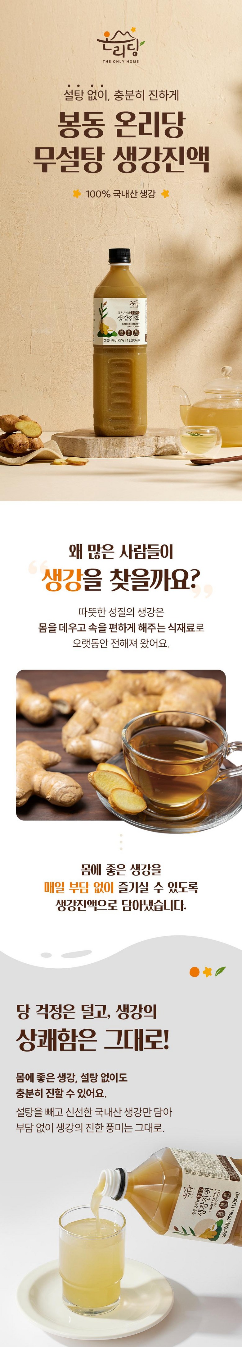 | 품목 또는 명칭 | 봉동 온리당 무설탕 진액 | 포장단위별 내용물의 용량(중량),수량,크기 | 1L |