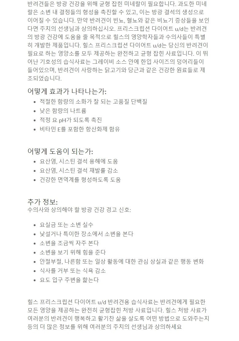 | [ 유통기한 : 2026년 08월 ] 유통기한 확인 후 구매 부탁드립니다!!!!!! 힐스 (Hill's) 독 u/d ud 캔 370g(치킨맛) 강아지 비뇨기계 처방 습식사료 |