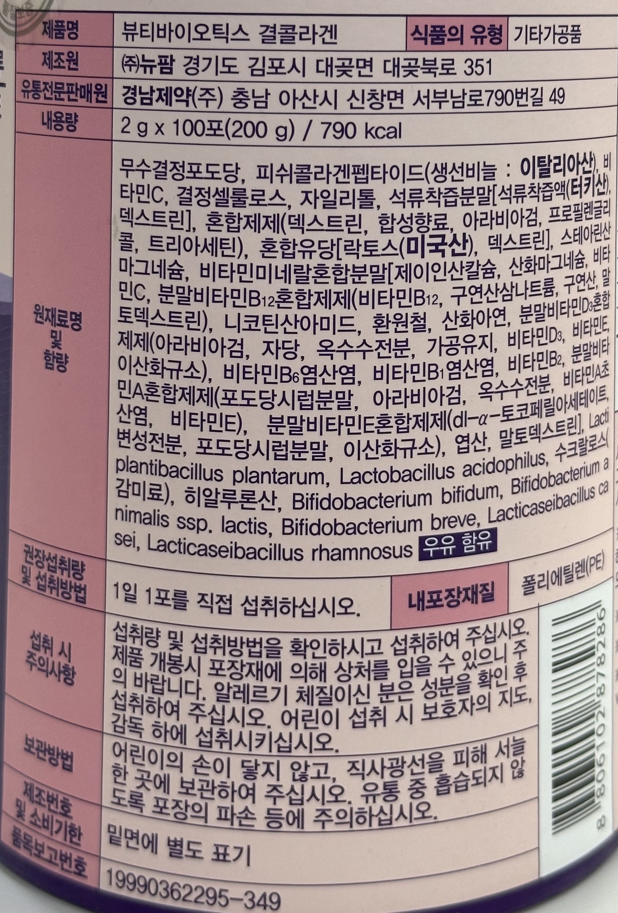 - 콜라겐 종류: 저분자콜라겐