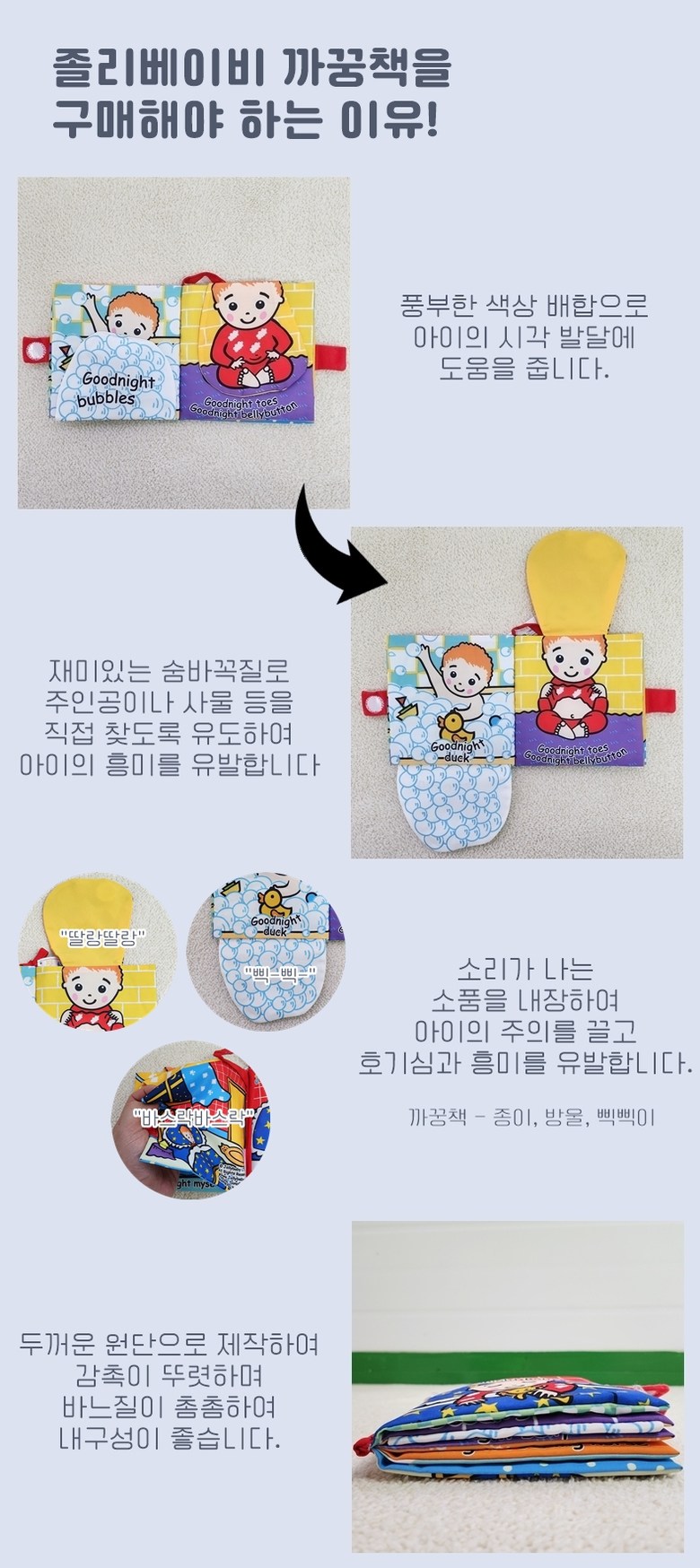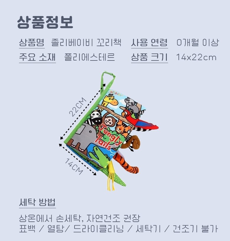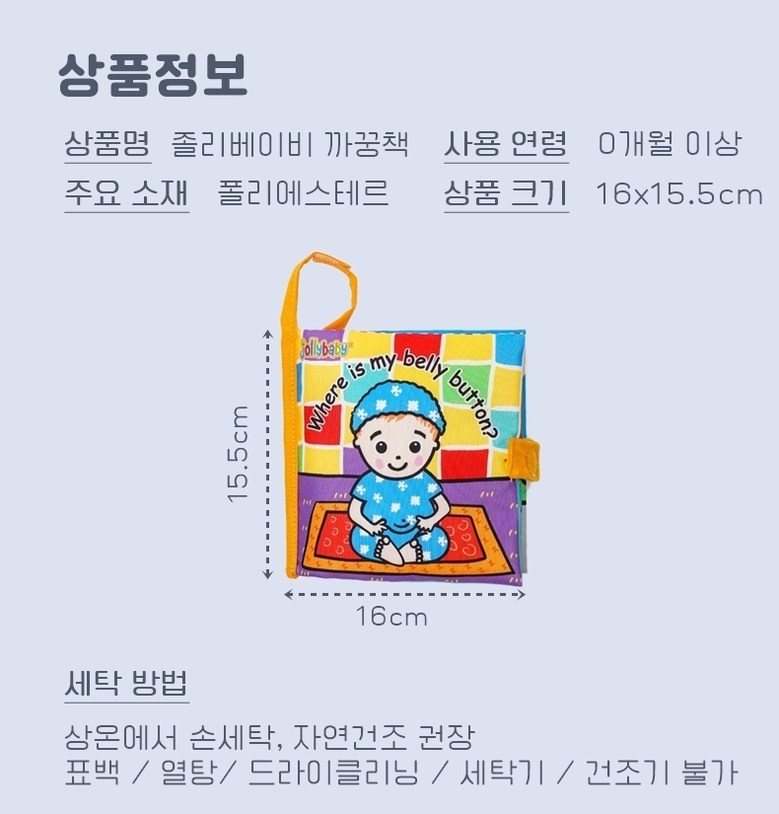 | 품명 및 모델명 | 졸리베이비 헝겊책 꼬리책+까꿍책 | KC 인증정보 | CN061R4501-2003 |
