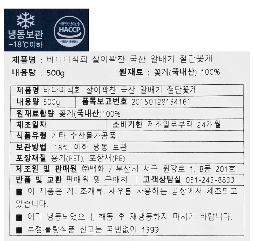 - 게 가공 방식: 냉동