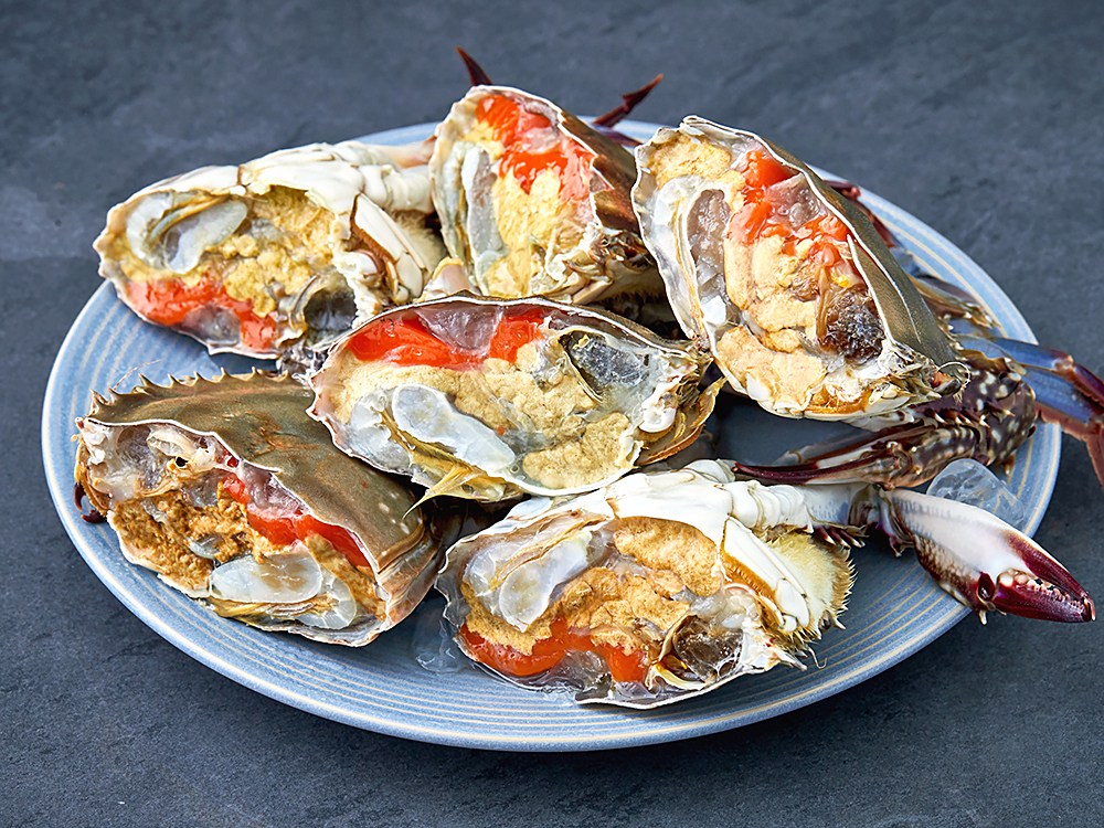 속살과 알이 알차게 차오른 절단꽃게